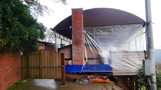 ↓騰龍御櫻的入口,周一並未營業,但是業者在門口和旅客回應可以進入賞櫻。旁邊搭起的小棚區域在營業時間有提供餐飲(窯烤比薩、義大利麵與咖啡、茶飲)