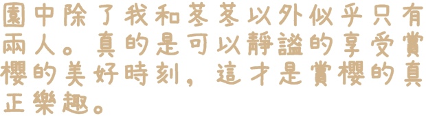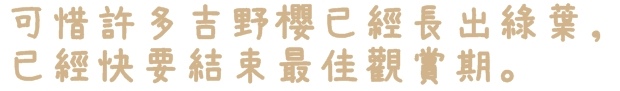 種植的櫻花種類繁多,花期也不一樣,所以唯一可惜的是不能完全看到所有櫻花種類的齊放。