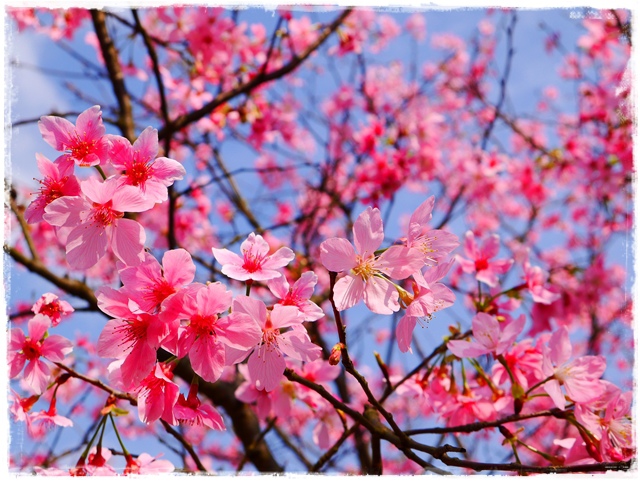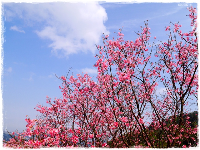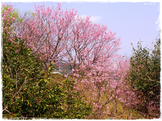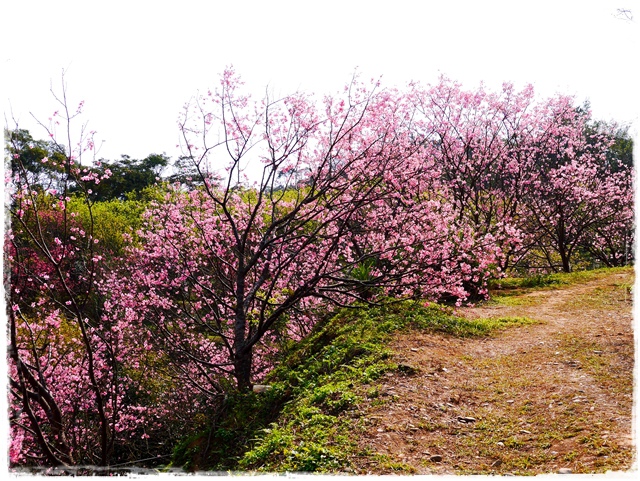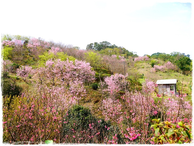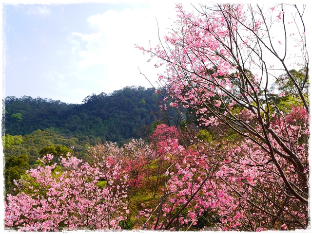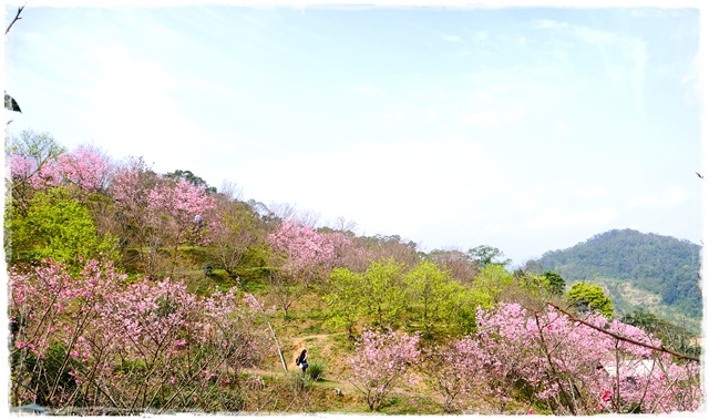 整片花園種植著千株櫻花,在春神來臨之際,整片山頭好不熱鬧。