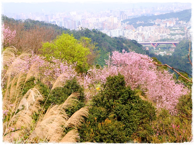 在騰龍御櫻不只可以欣賞多種櫻花,又能遠眺大台北,視野廣闊。