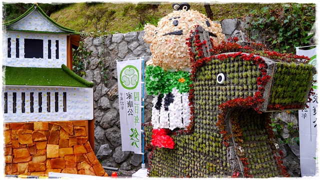 去年前往的時候剛好是家康公百年祭,因此現場除了有用花製作的濱松市公仔家康君的造景外,還有小型的濱松城