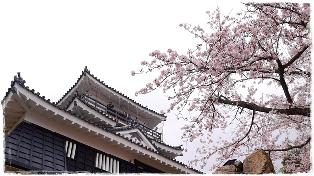 雖然是模擬的天守閣,但是和櫻花相映的風景依然相當美麗。
