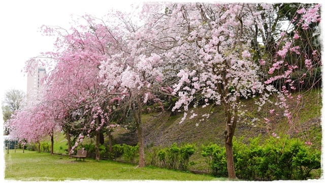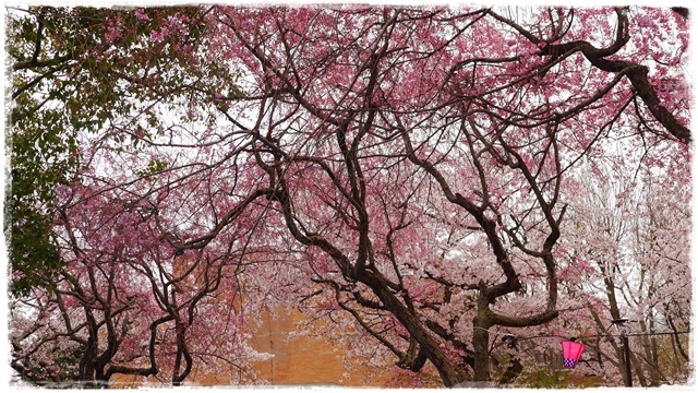 除了染井吉野外,境內還有許多八重枝垂櫻