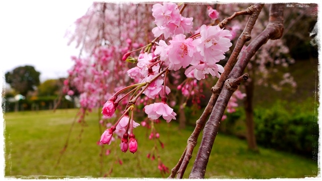 垂櫻如珠簾般向下伸,婀娜多姿令人讚賞。