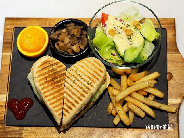 因為帕尼尼被切成兩半後,組成愛心的形狀,旁邊還沾上心型番茄醬汁。