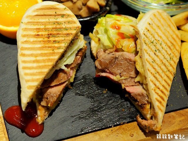 搭配酥脆的帕尼尼外皮,內部的蔬菜、帶有嚼勁的牛排,都一齊被咬進口中,多重口感層次,讓人相當滿足。