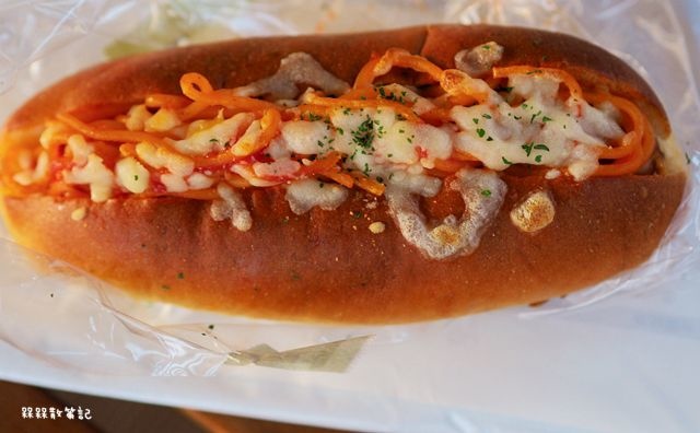 簡單來說就是給人炒麵麵包的感覺,將熱狗堡裡面再加上番茄肉醬義大利麵。