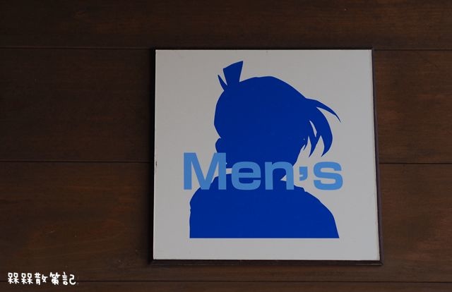 在前方還有公共廁所,牆上有黑白的柯南圖像,可以發揮偵探般的洞察力,透過仔細觀察,發現圖案上面有哪裡比較特別。