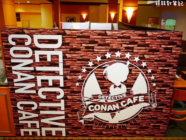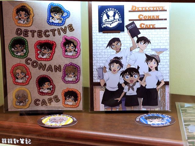 櫃台側邊則能看到這次咖啡廳的LOGO,以柯南常見的紅磚塊作為背景。