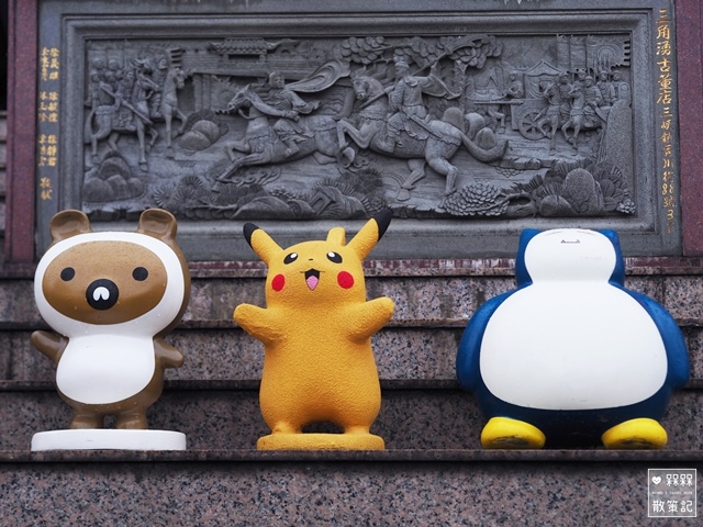 來到廣行宮門口,可以看到階梯上放著神奇寶貝皮卡丘與其他寶可夢人物公仔。