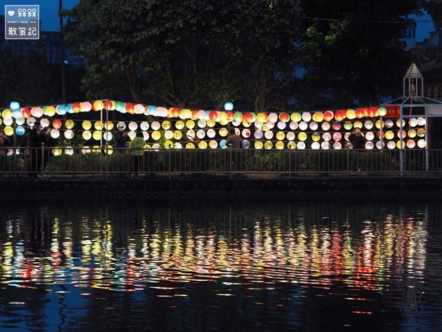 一排排隧道燈籠將水面映照得明亮閃爍。