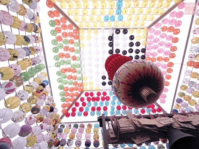 從入口處走來,就能看到燈籠排列成隧道般,繽紛的色彩貫穿整條道路。