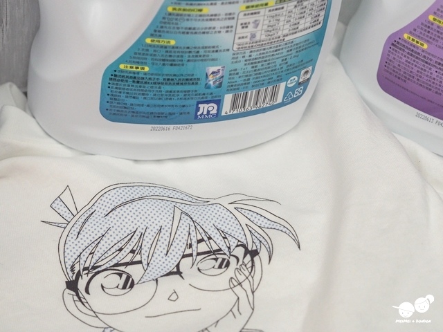 防螨成分PLUS洗衣精背面是柯南比讚的動作。