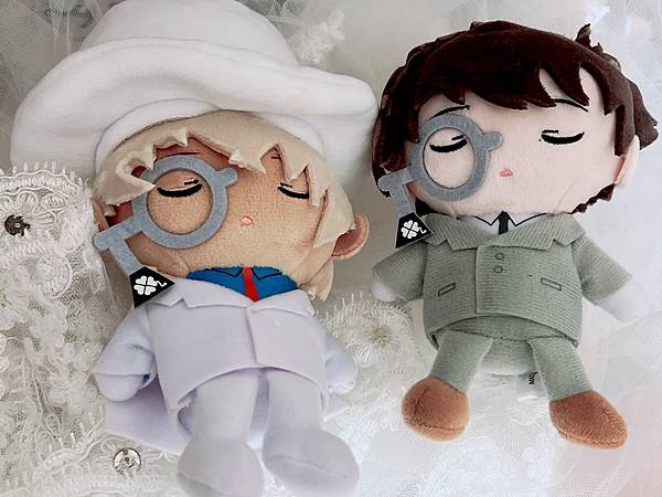 兩個娃娃同樣的特色是都有戴著怪盜的單眼鏡,小小的垂釣下來,相當可愛。兩人都是閉上眼睡覺的模樣。